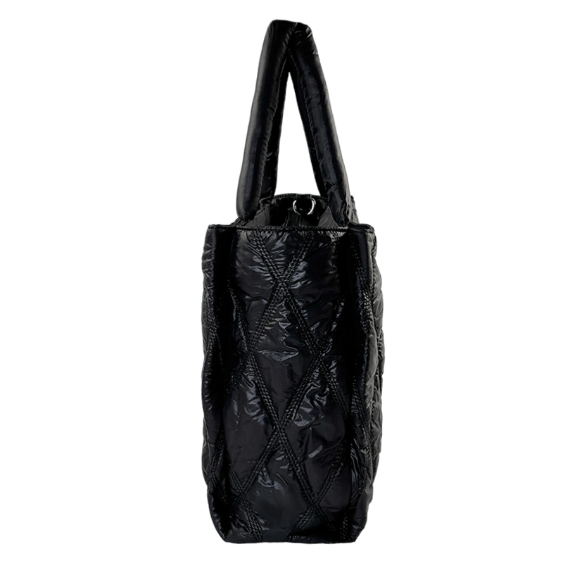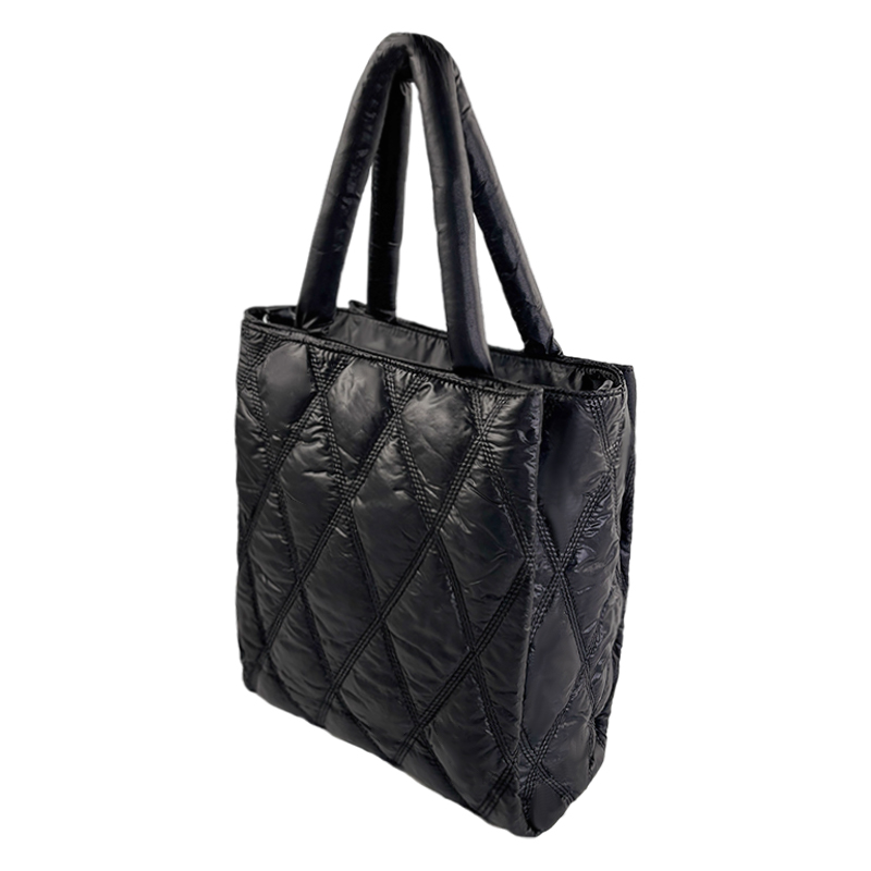 여성용 퀼팅 나일론 토트백으로 데일리 스타일을 한층 업그레이드하세요. 광택 마감과 다이아몬드 퀼팅 패딩으로 부드럽고 폭신한 질감을 선사하는 최고급 퍼퍼 토트백입니다. 두툼한 패딩 핸들은 편안한 그립감을 제공하며, 길이 조절 및 탈부착이 가능한 숄더 스트랩으로 토트백, 숄더백, 크로스백으로 다양하게 연출할 수 있습니다.