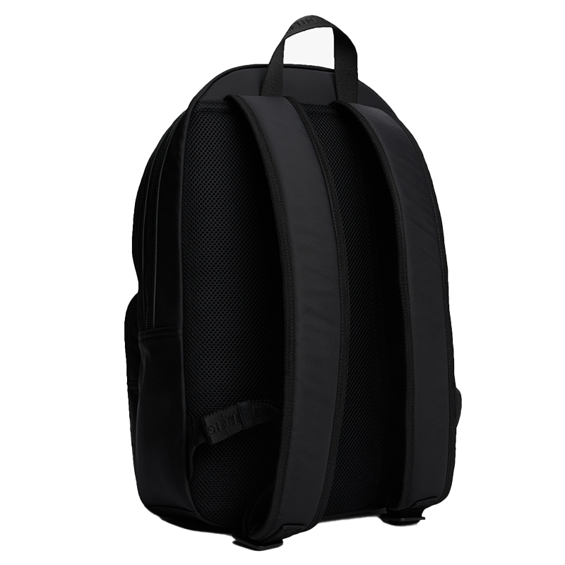 This sleek black backpack features a structured dome-shaped top, offering a clean and modern silhouette. Designed as a brand-customized style, it balances minimal aesthetics with practical functionality, making it an ideal bag for men in both business and casual settings.
