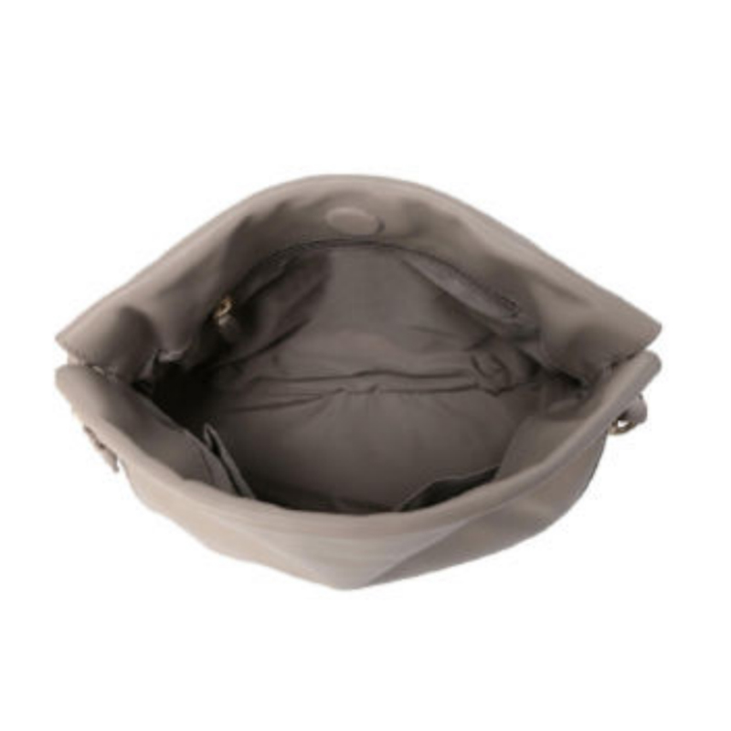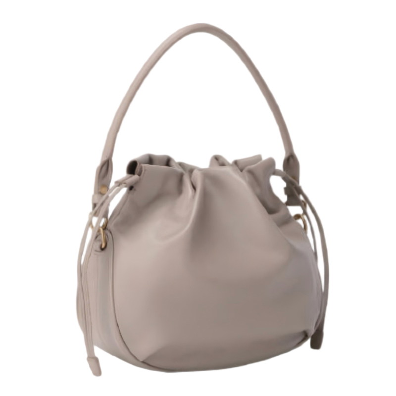 This chic small drawstring bag is crafted from high-quality leather, offering a blend of practicality and elegance. Its unique design allows it to transform from a compact hobo bag into a more open, spacious tote bag, making it a versatile accessory for women on the go.