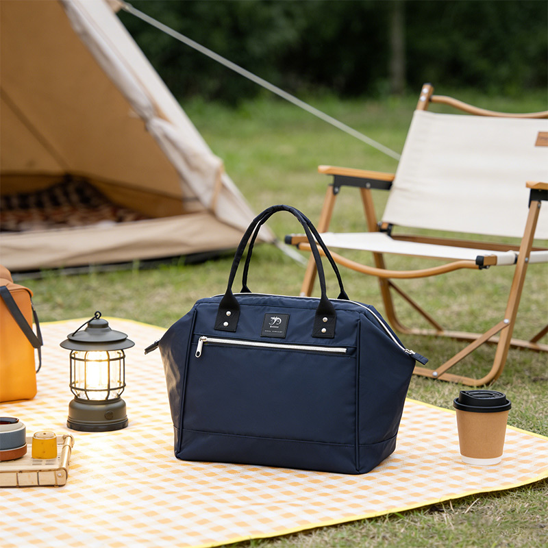This lightweight and minimalist tote bag is crafted from 230D dark blue twill nylon and finished with bright silver nylon zippers for a clean, modern look. Designed with a compact silhouette yet impressive storage capacity, it transitions effortlessly from daily work use to travel or family outings. Its structured design and practical layout make it a versatile choice among contemporary tote handbags.