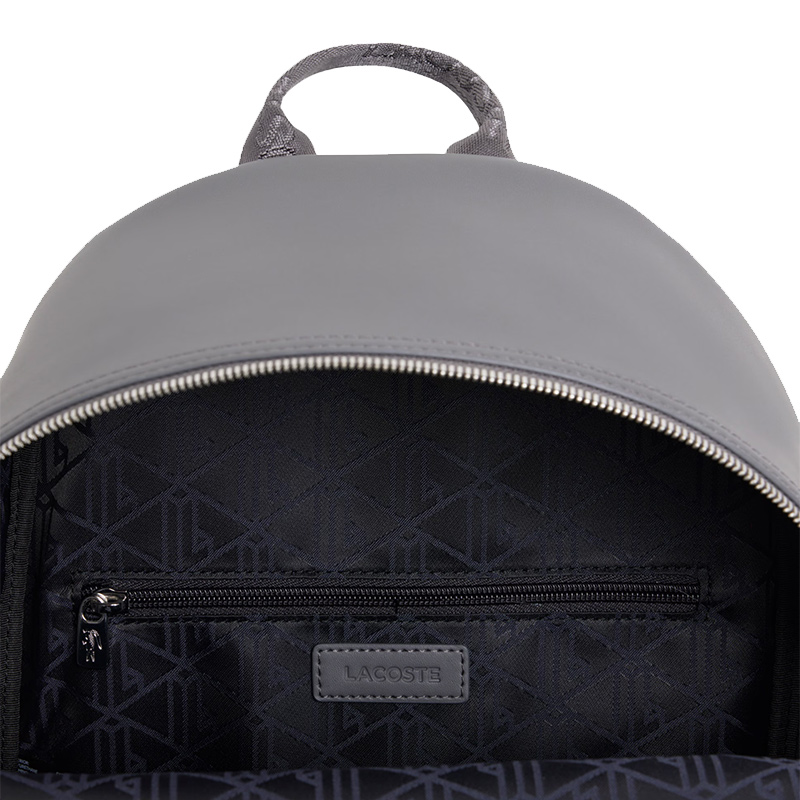 This stylish gray backpack is made from plain recycled Petit Piqué, combining sustainability with modern design. Perfect for men, it offers a spacious interior with a zipper pocket and customizable options for personalized backpacks.