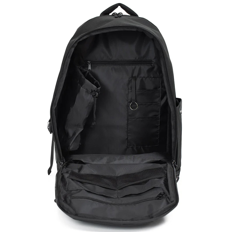 The main compartment adopts a 180-degree full-opening design, allowing clear visibility and efficient packing. Inside, a well-structured multi-pocket system includes a dedicated padded laptop compartment, providing reliable protection for electronic devices. The internal capacity also supports clothing and travel essentials, enabling the backpack to function effectively as both a laptop backpack and a short-trip or weekender bag.