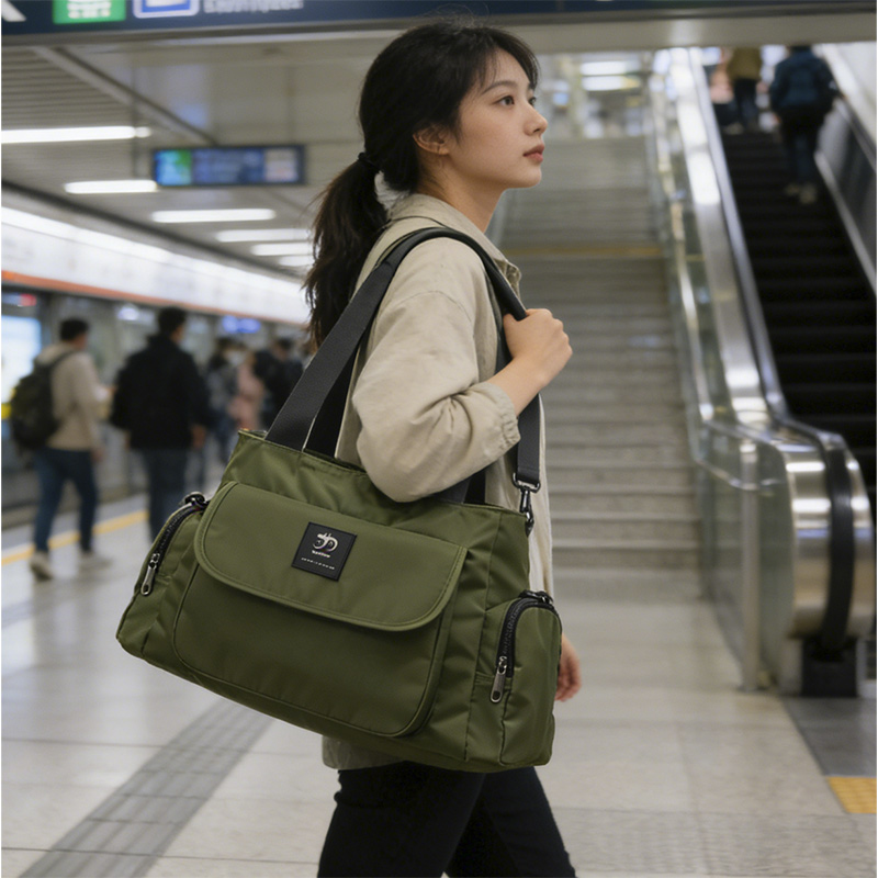 0.64 lbConstructed from premium waterproof nylon fabric, this large tote purse provides durability while maintaining a soft and lightweight body. The front flap, accented with a minimalist logo patch, is secured with a high-quality magnetic closure that ensures both privacy and quick access. The structured yet flexible design makes it suitable for brands seeking designer tote handbags with practical everyday appeal.