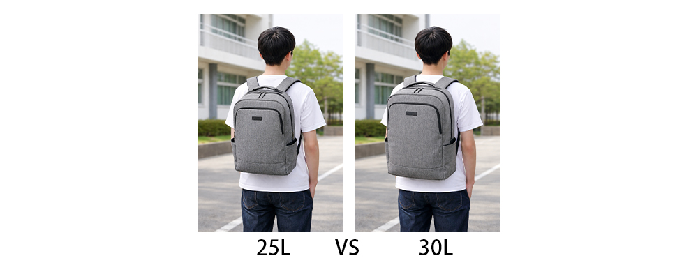 For commuter students, the backpack mainly carries textbooks, stationery, and personal essentials. A capacity of 20-25L is usually most suitable. This size is enough to hold the necessary study materials and small personal items such as a phone, keys, and other essentials.