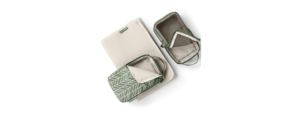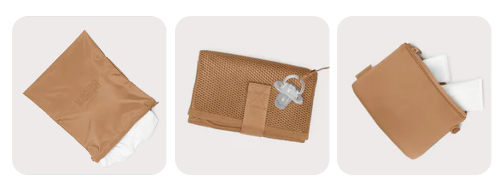 추가 기능 3보스 플러스 기저귀 가방에는 각각 닦아낼 수 있는 기저귀 교환 패드가 포함되어 있으며, 패드는 별도의 지퍼 포켓에 보관할 수 있습니다.