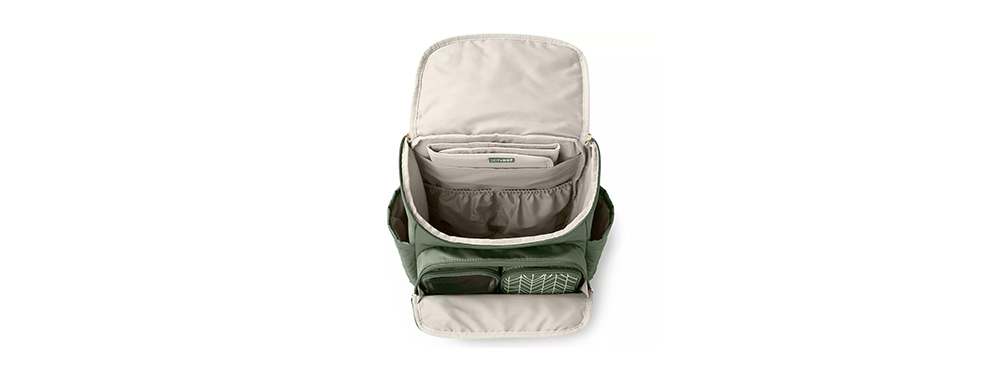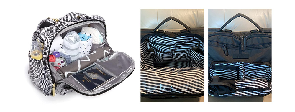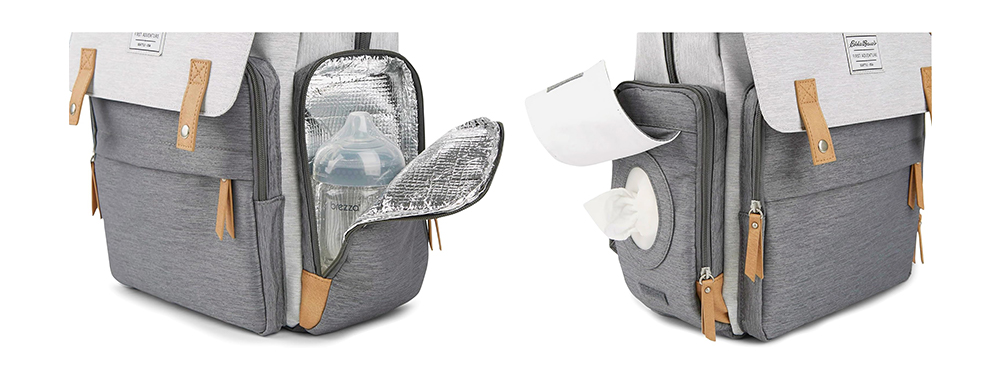내부 구성 및 수납 공간: 내부 디자인은 비교적 전통적이고 기본적인 형태입니다. 일반적으로 몇 개의 주요 수납 공간, 측면 포켓, 보온 물병 포켓, 탈착식 기저귀 교환 패드가 포함되어 있습니다. 칸막이의 개수나 기능적인 디자인(예: 전용 방수 가방 및 세분화된 포켓)은 Itzy Ritzy, JuJuBe, Skip Hop과 같은 전문 브랜드 제품만큼 풍부하고 세밀하지는 않습니다.
