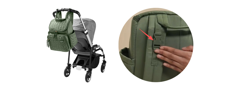 추가 기능이 가방에는 유모차 스트랩이 함께 제공되며, 백팩 어깨 스트랩 하단에는 조절 가능한 탄성 밴드가 있어 유모차 손잡이에 쉽게 걸어 어깨 부담을 줄일 수 있습니다.